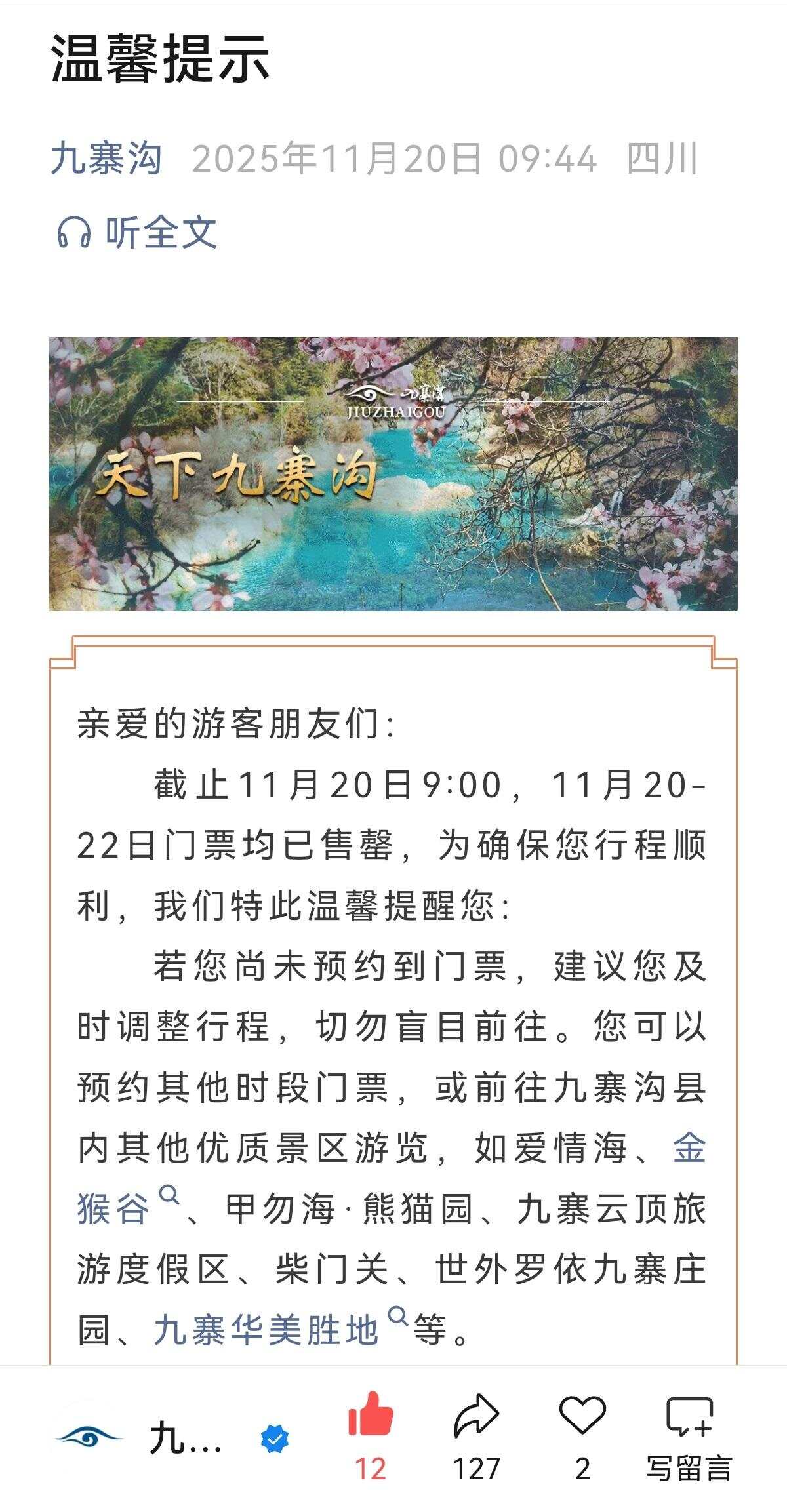 近期,广东佛山、浙江、四川等全国多地中小学生迎来为期3天的秋假,带来文旅消费新变化。原本的淡季旅游市场被引爆,九寨沟、青城山、岳麓山等知名景区频频公告预约爆满,“错峰”出游逐渐形成11月出游小高峰的态势。