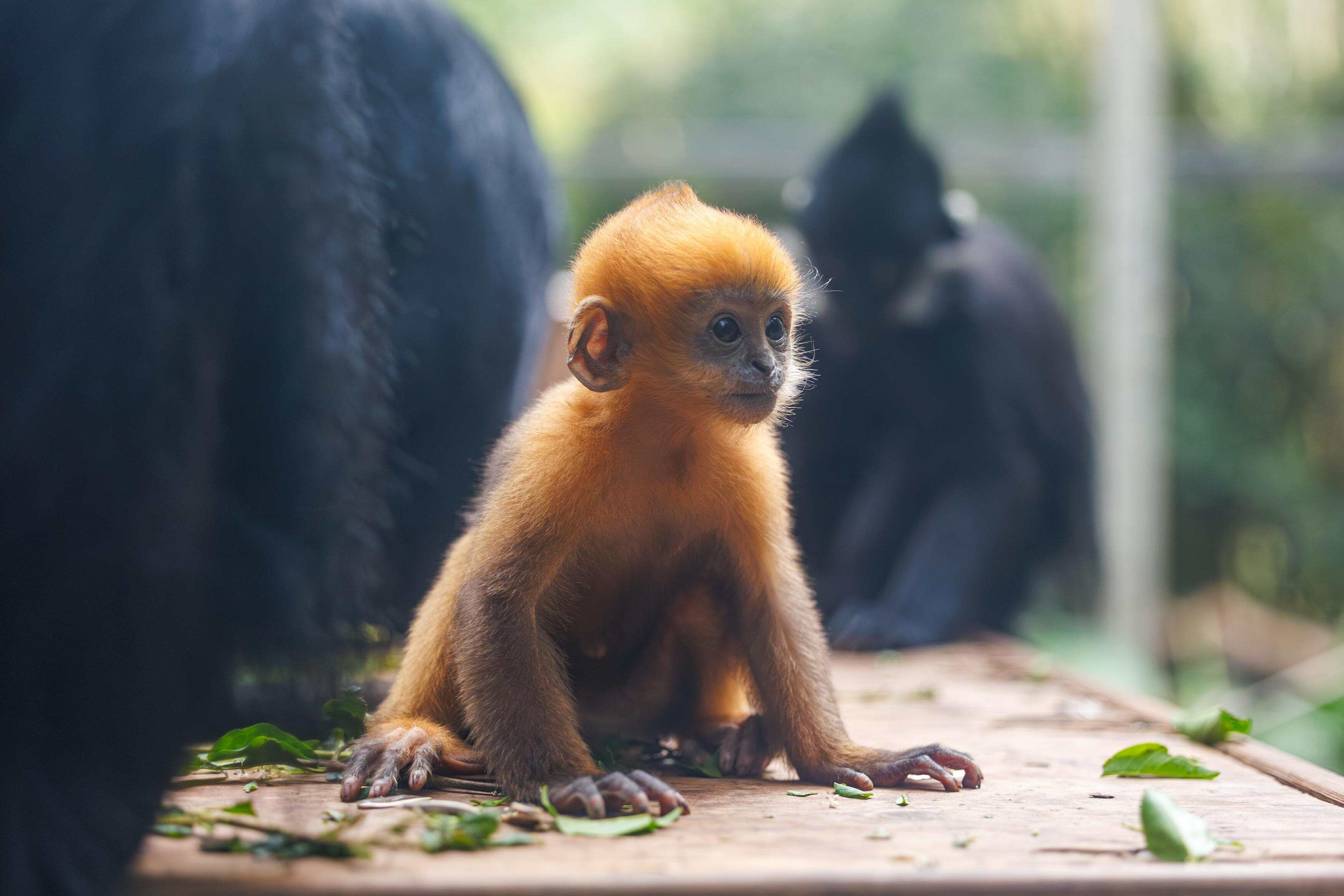3月23日,广州长隆野生动物世界黑叶猴“初七”迎来满月,正式与广大游客见面,国家一级保护动物黑叶猴家族再添一位可爱新成员。这只全身披着金黄色毛发的“萌新”小黑叶猴,凭借乖巧软萌的模样,迅速成为园区内最耀眼的小“明星”。
